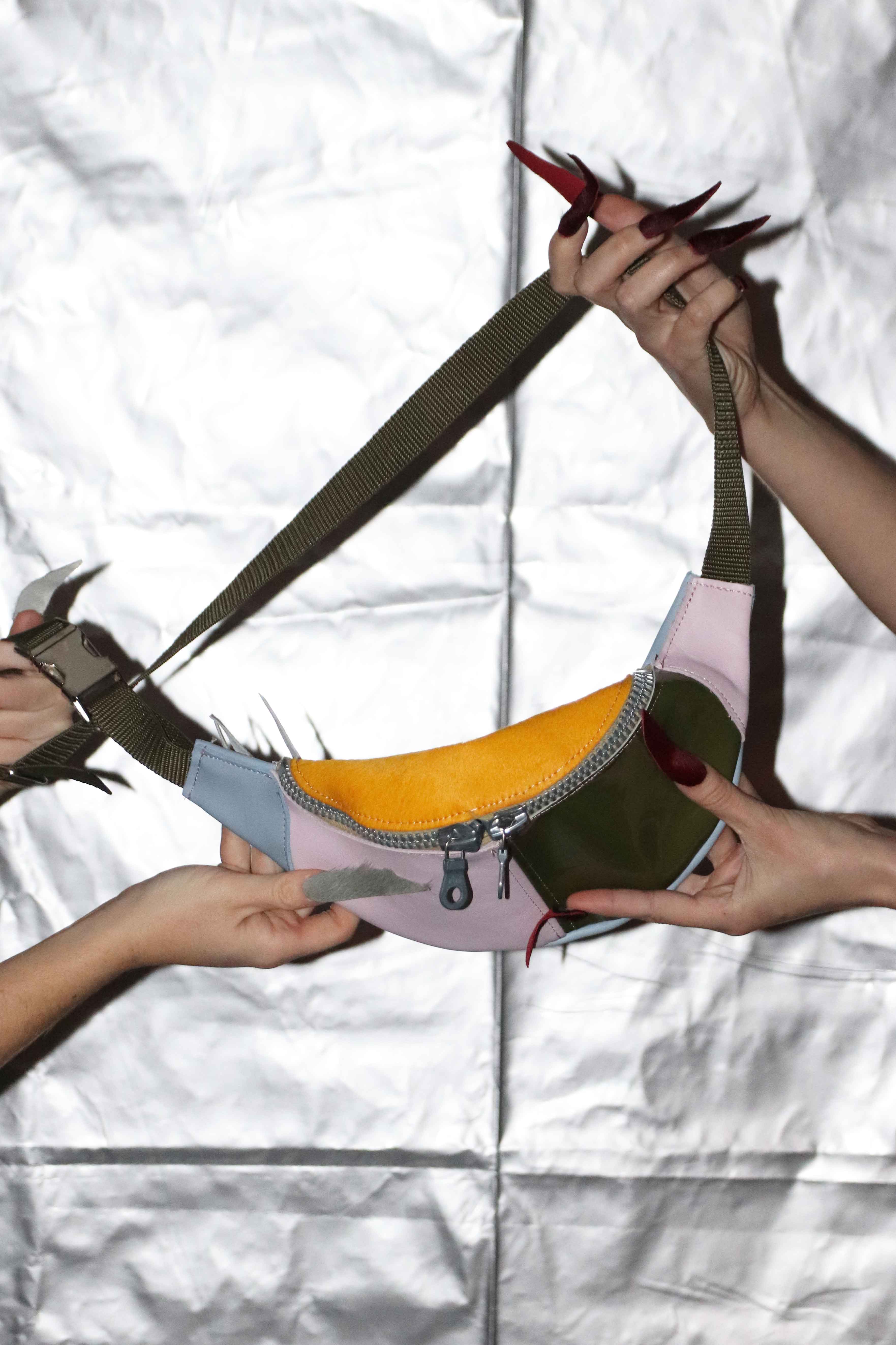 Color scheme: baby blue, furry sunflower yellow, glossy dark olive green and pale pink